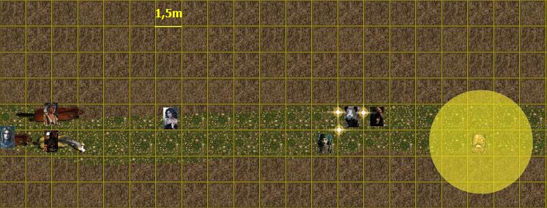 Rien ne fut perceptible pour ses compagnons, mais force était de constater que le regard de l’animal avait immédiatement changé, semblant soudainement plongé dans un brouillard. Malgré les blessures qu’il affichait, le sanglier restait immobile la tête basse à la grande surprise des non pratiquant des arcanes. Assurément le jeune ensorceleur se révélait plein de ressources au niveau de ses capacités, et il faudrait compter sur sa puissance insoupçonnée à l’avenir. Initiative Giulia 4(Dé)+7 = 11 Célestia 9(Dé)+2 = 11 Setuphan 10(Dé)+1 = 11 Valcor 18(Dé)+1 = 19 Sanglier = 8Concentrés sur le combat et la folle adrénaline qui les enivrait et se répandait dans leurs corps, les membres de l’expédition n’entendirent pas les bruits du martèlement de sabots approchant sur le chemin.