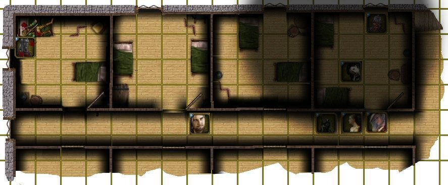 Le barde illuskien quant à lui ne pouvait plus grand-chose pour son compagnon mort, mais peut être le pourrait-il pour ses amis vivants. Il regarda à son tour dans le couloir. Quelques mines curieuses et barbues pointaient ça et là au détour des portes, et des mouvements se faisaient entendre au fond du couloir en direction de l’escalier qui menait à la salle principale. Mais étrangement, sa vue humaine déjà peu habituée au noir de la nuit, fut mise à mal par une zone d’une obscurité encore plus absolue qui lui barrait totalement le champ de vision. Mais aussitôt un début de réponse lui vint en tête, car drows et magies des ombres étaient toujours très liés dans les contes et chansons. Initiatives Vieltal: 16(Dé)+1(Dex)+4(Science de l'initiative)=21 Miramal: 16(Dé)+3(Dex)=19 Ibealia : 7(Dé)+4(Dex)+4(Science de l'initiative)=15 Hermine : 13(Dé)+1(Dex)=14 Maha: 12(Dé)+2(Dex)-2(Eméché)=12 Drow: 4+3(Dex)+4(Science de l'initiative)=11