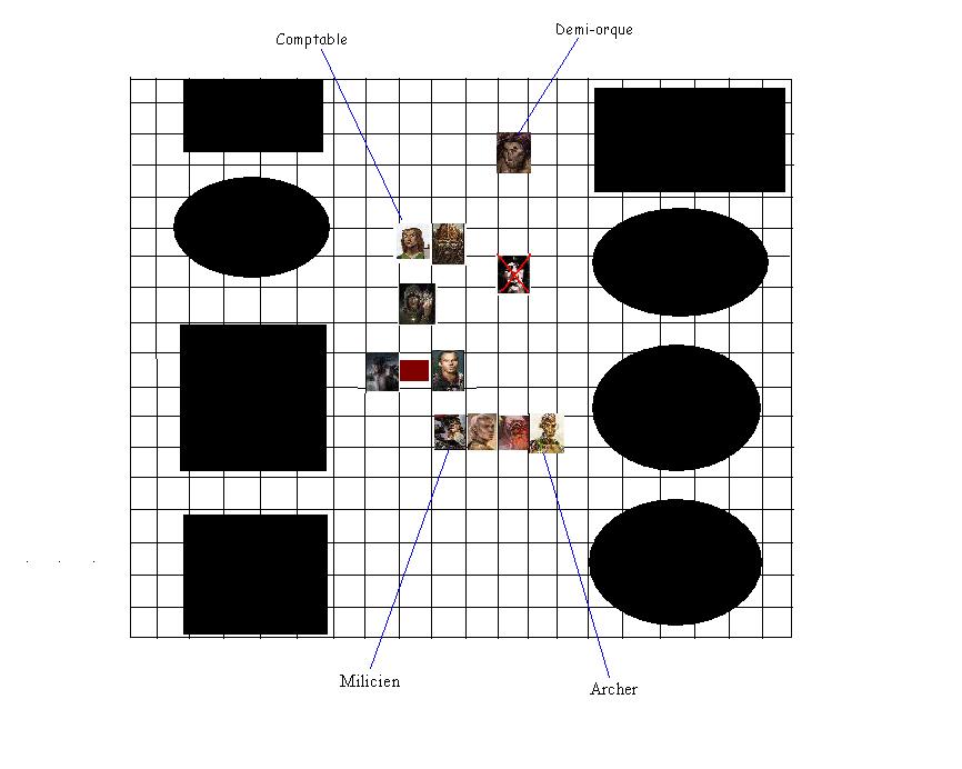 Seul face au groupe, le demi-orque attendit d’un pied ferme. Initiative : Belgos 19 Kerlomar 18 Demi-orque 16 Kurtik 15 Amur 13 Garjzlasa 7 Kebur 6