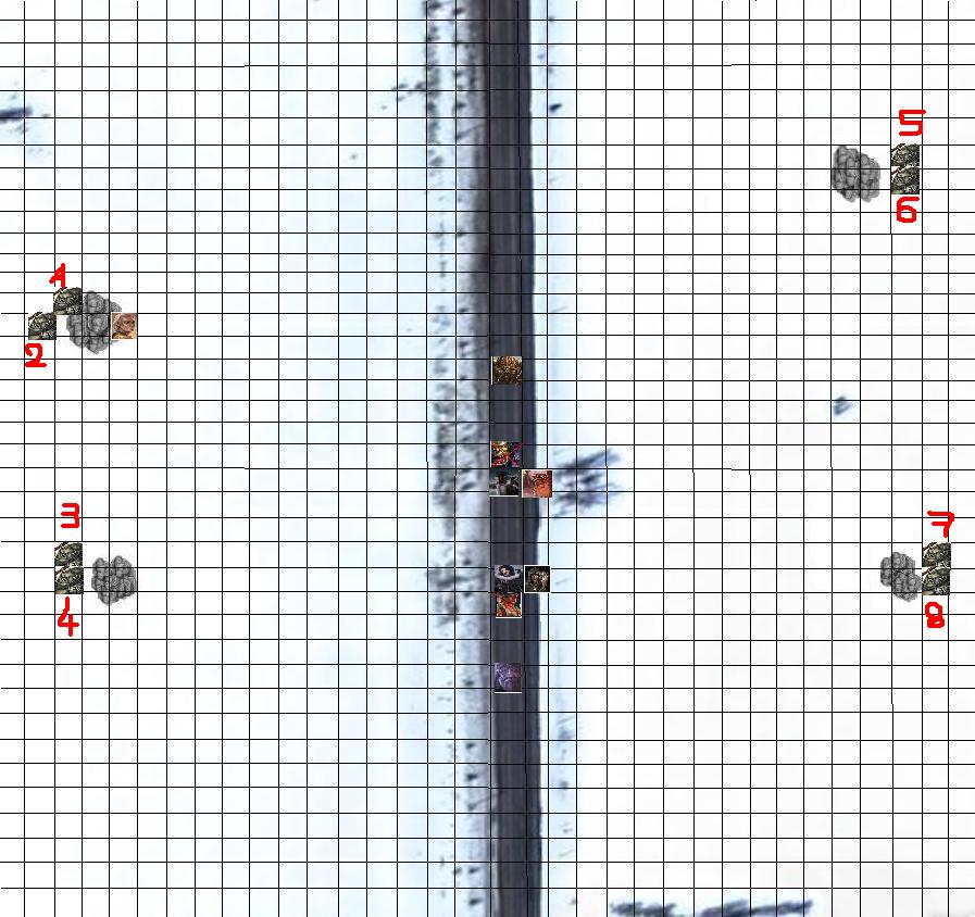 Car derrière le rocher, surgit soudain deux orques armés d’arbalètes lourdes dont ils firent usage immédiatement en direction du groupe. L’attaque se révéla d’autant plus dangereuse que six autres orques, dissimulés jusqu’alors par paire derrières trois rochers, tirèrent également.