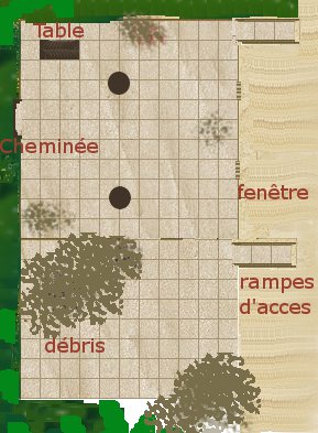 Le repas se passa dans un silence plus ou moins morose, fatigue aidant, les pensées fixées sur les dangers éventuels, qu'ils soient à venir ou non, chacun s'interrogeait. La pluie battait sur les tuiles en un régulier son sourd tandis que les gouttes tombant des divers parties du toit défoncé déstabilisait les accords harmoniques en de régulier ploc tombant sur le sol. Les flaques sur le sol grossirent pour finalement aller se déverser par les deux fenêtres béantes. Dzahim investit du rôle de leader et conscient de l'importance de sa mission, put espérer une réponse à sa prière, chose qui lui vint naturellement, comme si un souffle nouveau s'était instauré. Très vite sa vivacité d'esprit rassembla les éléments de ce qu'il avait entendu et les différentes informations qui étaient stockés dans sa mémoire. Quelques éléments de réponse se formèrent enfin.