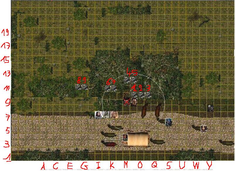 Arrivé en vue ue véhicule et hors de porté de celle de ses congénères il lança à pleine gorges « ! àl raP » pour essayer d’en ameuter le plus possible. S’il arrivait à en entraîner la totalité dans cet « entonnoir » improvisé, c’en était fini de leur petite bande. Ils se retrouveraient pris entre le convoi et ses compagnons. Le tout à présent était de s’en sortir avec son scalpe. Une fois hors de vue du grand gaillard qui jouait du cimeterre (encore un !), il se plaça devant la charrette. Il attendait les orques qui devaient venir à sa suite avec anxiété.