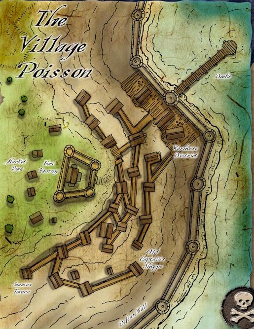 - Combien de navire attaqueront le village, tous? Seulement le notre? Dans ce cas la partie sera difficile pour la prise du fort. Je pense que le village en lui-même ne posera aucun problème. Les faibles remparts d'un village de pêcheurs seront faiblement protégés et ne devraient pas poser difficultés aux pirates une fois déguisés en marchands. Par contre, tous les villageois et gardes qui auront réussi à se sauver se retrouveront au fort et alors il sera très difficile de les déloger. Il faut donc ruser là encore et je propose que nous investissions, à nous cinq, la butte fortifiée et que nous concentrions nos forces personnelles sur cet objectif. En débarquant un jour plus tôt que prévu, nous aurons suffisament de temps pour investir le point le plus protégé qu'est ce petit château et de trouver le moyen d'en exterminer tout ceux qui s'opposeraient à nous.