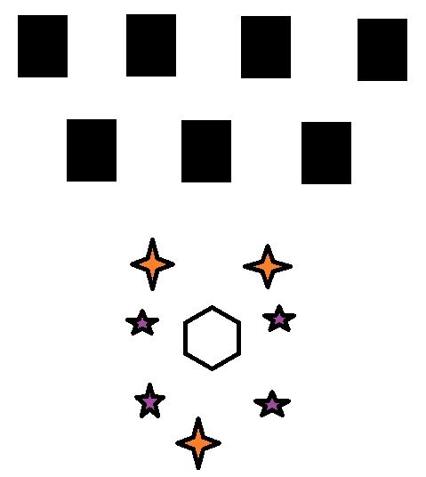 o les poulets des iles ! Bon je me lance dans la finalisation de la réponse avec les éléments que j'ai. Je peu valider le coup de la cooshee en dragon. Un jet de dressage sera fait par Dinenda pour lui éviter les paniques d'un tel changement. C'est un animal intelligent mais pas non plus de ouf. En plus sauf erreur de lecture de ma part, il a pas de bonus de dressage avec elle? Donc il est juste a +8. (je corrigerais si jamais vous trouvez de quoi me contredire évidement mais c'est quand même un DD15 pour la faire accepter de servir de monture) Pareil que la dernière fois, pour éviter de piétiner de trop, une reconnaissance automatique par des éclaireurs des gardiens sylvestres sera faite. A vous de voir si vous souhaitez la compléter par une reco perso ou pas. Pour le campement. Les carré noirs ce sont les tentes, assez grandes pour faire dormir 5 personnes. les étoiles jaunes, c'est les feux. L'hexagone c'est l'enclos de fortune avec des gens de petite taille dedans et les étoiles violettes ce sont des couples! Un eldreth en tenue martiale et un mec encapuchonné (donc 4 étoiles font 8 personnes !) Si vous voulez des précisions je vous les donneraient sans souci ^^ Edit : PS : le dernier jet de perception n'est pas une perception, c'était un D100 de chanceux ou pas  PS2 : au fur et a mesure que j'avance...je me rends compte que j'ai peut être mis la barre super haute pour la difficulté de cette situation....il y a plus d'un moyen de s'en sortir, mais pour moi c'est facile puisque c'est moi qui fout les pièges.... donc je sais comment les esquiver.... dites moi ce que vous en pensez, si je suis trop violent ou si ça va. N'ayant jamais fait jouer des persos d'aussi haut lvl j'avoue que je je suis peut être déraisonnable. Lancers... Surprise 1 - Jet de compétence : Concentration : 19(d20)+2 = 21 Surprise 2 - Jet de compétence : Concentration : 6(d20)+2 = 8 Surprise 3 - Jet de compétence : Concentration : 2(d20)+2 = 4 Surprise 4 - Jet de compétence : Concentration : 1(d20)+2 = 3 Reconnaissance 1 - Jet de compétence : Perception : 17(d20)+5 = 22 Reconnaissance 2 - Jet de compétence : Perception : 12(d20)+5 = 17 Evil surprise - Jet de compétence : Perception : 20(d20)+3 = 23 Evil surprise 2 - Jet de compétence : Perception : 14(d20)+3 = 17 Evil surprise 3 - Jet de compétence : Perception : 6(d20)+3 = 9 Evil surprise 4 - Jet de compétence : Perception : 14(d20)+3 = 17 Evil surprise final - Jet de compétence : Perception : 15(d100) = 15 Dinenda - Jet de compétence : Dressage : 5(d20) +4(deg) +4(Cha) = 13 vs DD15 ~ Echec Dinenda - Jet de compétence : Dressage : 13(d20) +4(deg) +4(Cha) = 21 vs DD10 ~ Réussite Ce message a été modifié par Laeylan le Dimanche 09 Octobre 2022 à 21h43