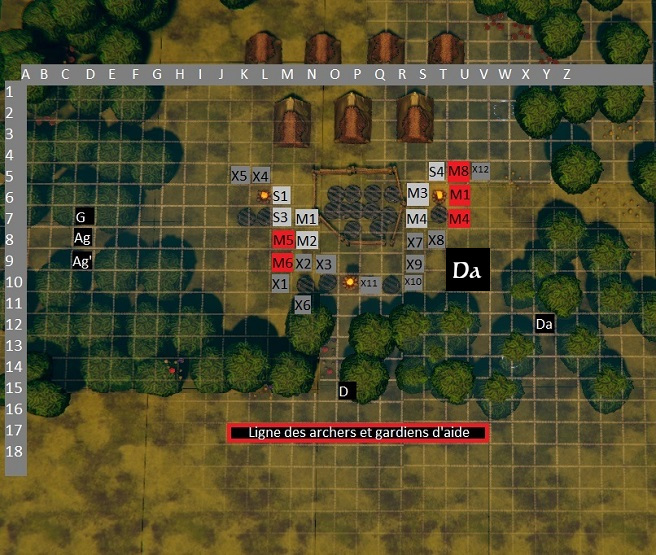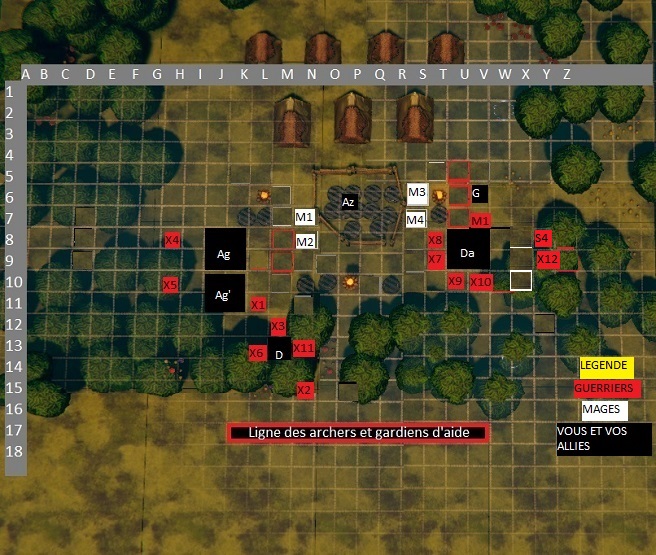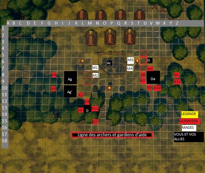 es XP c'est pas ce qui va manquer Voici la nouvelle carte comme elle s'était terminée en fin de round 1, on démarre le round 2 vous avez déja posté pour certains. Peut être avec la nouvelle map vous voudrez modifier deux trois trucs? (j'ai pas tout lu encore) Du coup prochain post MD max Lundi 23 pour vous laisser le temps de modifier ou poster et moi le temps de lancer les dés en plusieurs fois et peaufiner ma stratégie en fonction de vos actions. Pour info je suis a Dublin la semaine prochaine, du coup comme je sais pas trop comment on va être occupé, je serais dispo pour les petit posts HRP modifier un truc que j'aurais raté ou autre et les MP si besoin. Je ne suis pas sur par exemple que le familier d'Agath's puisse aller chopper un mage vue sa taille et la place qu'il reste. Merci pour les stats du dragon de Godrick, ca m'a bien aidé ^^. J'ai décidé de le placer derrière M1, pour lui éviter d'être trop en danger, mais si tu veux changer de place il est encore temps avant le round suivant ! A vous les studios et Brace yoursefl, Venali is comming !