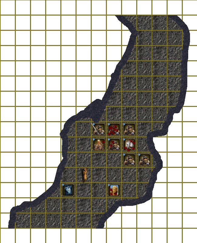 Gobelin7 se déplace Gobelin5 se déplaceLes blessures de l’humain décuplèrent la volonté combative de ses alliés qui se ruèrent aussitôt dans un nouvel assaut. Dorîk le fier nain du Grand Nord réussit exactement le mouvement qu’il avait visualisé, déstabilisant le gobelin trop hardi d’un coup de hampe, tandis que en une rotation, la hache s’abattait brutalement sur le crâne de la créature.