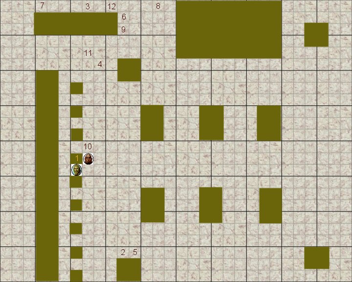 Pendant ce moment tout ce que l’on put entendre se fut le tavernier crier « Ah non !!!!! Pas de bagarre dans mon établissement !!! Cela suffit si vous voulez vous battre allez dehors !!!! » Puis une autre voix se fit entendre personne n’avait remarqué l’entré de cet humain, il était très grand environ deux mètres de haut, il avait un crane rasé à blanc, une barde de quelque jour se trouver sur son menton, il avait un bâton dans une main, une aura de puissance émané de lui, il dirigea son bâton en direction des deux hommes et lança « Cela suffit vous deux !!! Il est grand temps pour vous de rentrer !!!! Ou c’est moi qui vais vous corrigez !!! » Les deux hommes eurent un regard l’un envers l’autre puis ils répondirent « A vos ordre nous y allons de suite !! » Ils rangèrent leurs armes et partirent sans attendre, tout le monde pouvait voir la peur dans leur yeux, l’on aurait dit des chiens se faisant gronder par leur maître. Une fois dehors, l’homme les suivit et referma la porte derrière lui, le calme revint peu à peu, deux serveuses apportèrent des boissons sur la table du groupe et une bouteille de rhum. Du côté du voleur la serveuse repris comme si de rein était « qu’es-ce que je vous serre ? » Carte de la taverne pendant l'action légendre Carte: 1=Nilawia 2=Njuma 3=Arek 4=Mussel 5=Hérudae 6=Elloa + Nefer 7=Dobun 8=Jalyne 9=Malig 10=Golnam 11=Xan 12=Necromus Jahëlo est dehors Et l'homme blond et l'homme noir vous aurait compris la sortie et au milieu a droite de la taverne