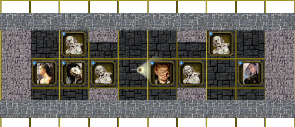 Prisonniers au milieu de couloir, qui soudain semblait avoir rapetissé, les aventuriers regardaient tout autour d’eux, inquiets et s’attendant au pire. Un nouveau grondement se fit entendre. Les mains d’Elinor se crispèrent nerveusement sur la première chose à porté, à savoir le bras de Rindelboom. Les portes des quatre niches s’étaient mises en mouvement, remontant, comme les autres étaient descendues et laissant s’échapper une odeur insoutenable. Seule Ibéalia sembla résister à l’affront du parfum de putréfaction qui envahissait la pièce. Initiative