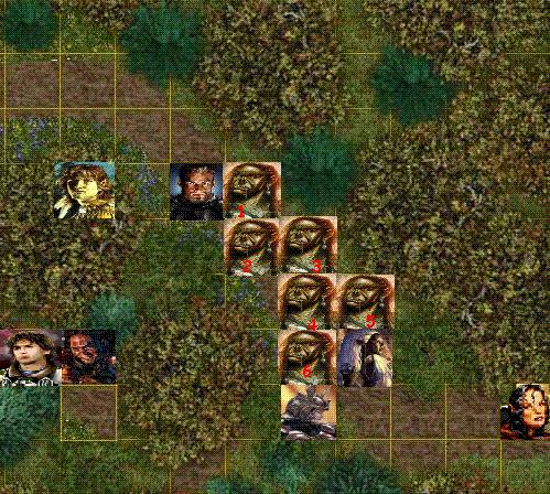 Résigné, il s’apprêtait à sauter dans la mêlée pour soulager un peu ses compagnons du nombre lorsque, profitant de sa position surélevée, dans la furieuse gigue que dansaient orques et elfes, il aperçut deux détails qui le firent se raviser : Tout d’abord il remarqua que les deux maraudeurs du milieu de la meute, loin de s’agglutiner en surnombre à ses amis, prenaient leurs arcs … Sans doute une charmante intention à son endroit … Eh bien ! S’il pouvait focaliser l'attention d'un tiers des ennemis, il aurait rempli son rôle Quoi qu’il advienne. Il nota aussi que le gobelinoïde assailli par Lhamo et Miriel chancelait, plus mort que vif.