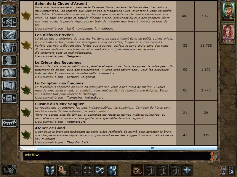 Après, c'est sûr qu'on peut toujours l'améliorer ... Si la future Taverne reste hiérarchisée en régions de Faërun, pourquoi ne pas faire "présenter" chacun des sous-forums par un personnage des Royaumes originaire de la région associée, sur le même modèle que Volo "présente" la Taverne actuelle ?