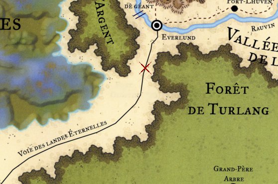 De toute façon, sur les lieux même de l'embuscade, plus rien n'était à trouver si ce n'est la pensée que s'approcher de trop près de l'étrange forêt de Turlang concourrait à devoir payer un bien autre droit de passage, un droit qui se payait avec son propre sang.