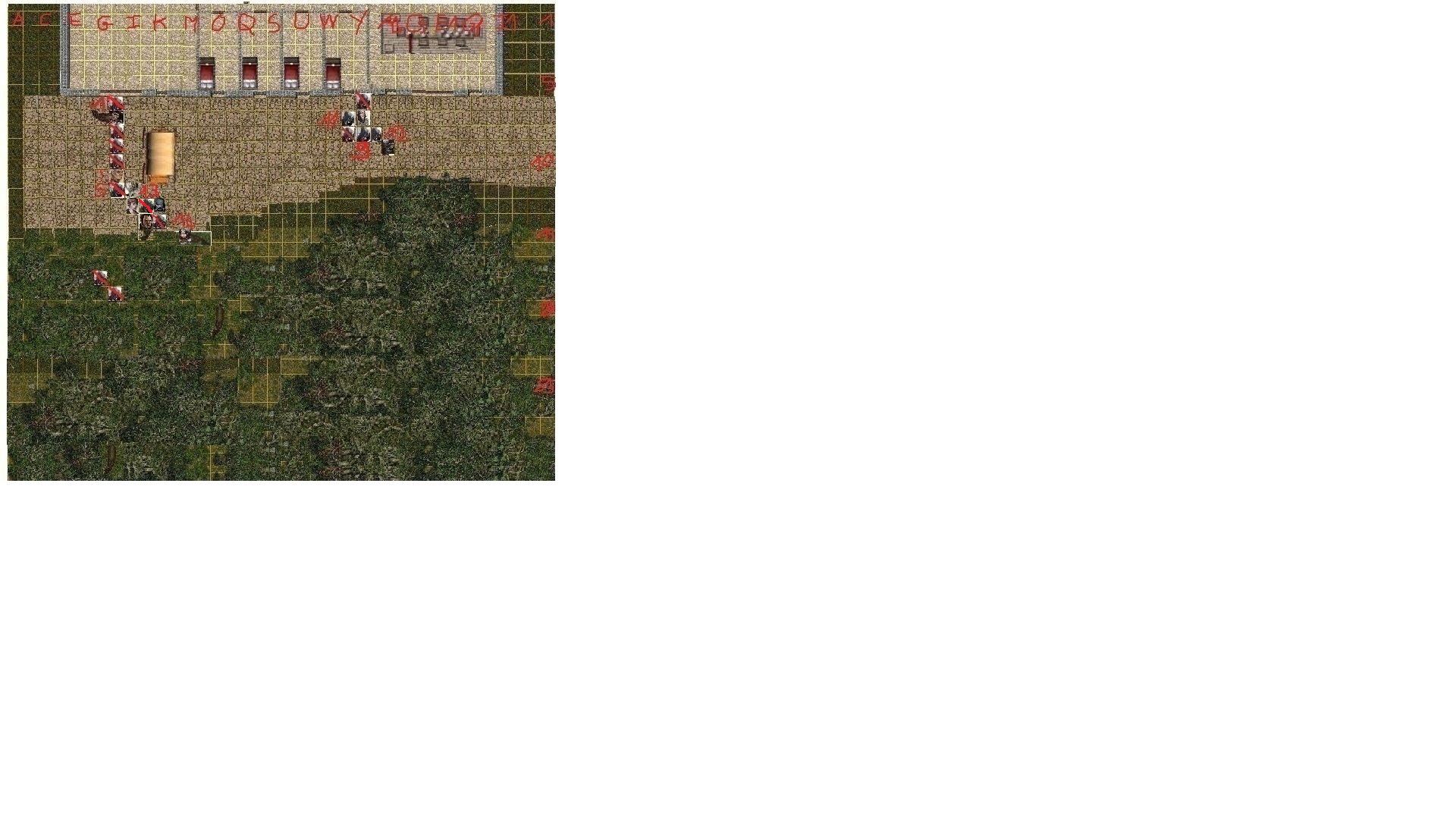 Sur cette dernière pensée, Corvo tenta une estoque vicieuse juste sous l'aisselle droite de son ennemi, les dés étaient jetés... Action libre: Pas de placement 1,50m vers la droite en AA9 Action simple: Attaque sournoise à l'épée courte de maître sur l'homme n°12 (prise en tenaille en diagonale)
