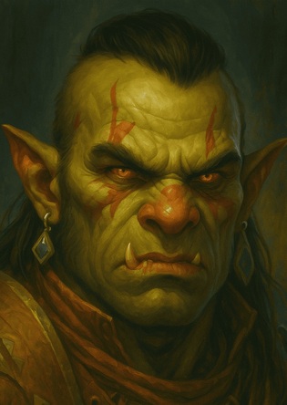 Le demi-orque baissa les yeux vers le parchemin. Ce petit morceau de peau tanné représentait à lui seul tout ce qu’il détestait : l’ordre des hommes, leurs sceaux, leurs mots gravés pour prouver qu’ils avaient raison. Chez les siens, un regard suffisait. Ici, il fallait un papier. Une signature. Comme si l’honneur pouvait s’écrire... Il l’observa un moment sans le toucher. Les symboles tracés dessus ne voulaient rien dire pour lui. Des signes morts. Des griffes d’encre que seuls les hommes savaient comprendre. Lui ne savait pas lire, et il n’en ressentait aucune honte. Ces traces d’encre n’étaient que des chaînes invisibles. Un Khargrun préfère la franchise d'une lame à la ruse des mots.