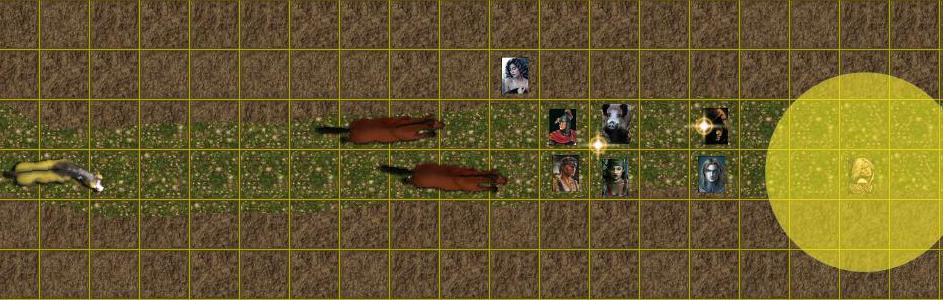 Giulia n'avait pas pu encore démontrer son talent à l'arc, la situation n'étant guère à son avantage surtout depuis l'arrivée des trois cavaliers. Bien qu'elle était d'un tempérament joueur, essayer de tirer l'animal à cette distance avec tout ce monde se révelait un pari un peu fou. Elle aurait pu toucher Sept et le tuer, ce qui à entendre parler la roublarde ne l'aurait pas genait mais qui en réalité l'aurait sûrement marqué. Elle découvrait de nouvelles sensations de plaisirs au fûr et à mesure de son aventure avec ses compagnons d'armes et commençait, malgré les apparences, à s'attacher à eux. La demi elfe se déplaca alors derrière l'un des cavaliers qui semblait fort mais peu sociable [Kran] et se placa au nord de la bête essayant de se placer à la meilleure place pour avoir la distance optimale pour toucher à distance sans que la bête puisse la charger et ainsi disposer d'un angle convenable pour tirer. Elle prépara son arc et tira en direction de la bête, et comme à son habitude, elle ne pu s'empecher de parler.