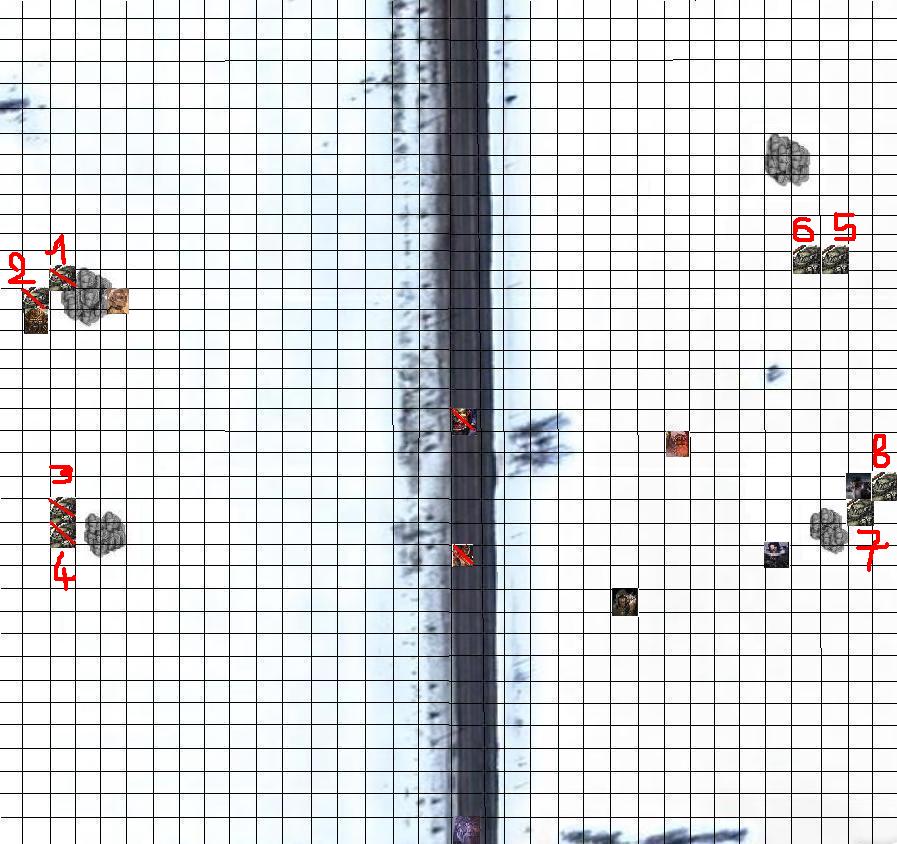 L’humain rit intérieurement de sa blague, bien que morbide, et senti que Sirth n’approuvait pas son avis. En effet, la belette grimaça, et Garjzlasa comprit qu’a l’avenir, il ne devrait pas refaire ce genre de plaisanterie., même intérieurement. Avançant dans la neige, avec précaution, il posa son arbalète sur son bras gauche, dégaina sa lance de l’autre main, et évolua vers l’endroit ou se tenait Kebur quelques instants auparavant. Il étudia l’avancée des orques, se préparant à leur offensive. Essayant de résumer les différents cas de figure, il se prépara a tout ce qui lui venait à l’esprit. Si les monstres se dirigeaient vers lui, il comptait bien en embrocher un à la lance. Au contraire, si ces derniers évoluaient vers leurs collègues, Ils étaient assuré de recevoir un carreau en travers des oreilles. Fin prêt à agir, le but premier de son action restait tout de même de se déplacer, se placer de façon optimale.