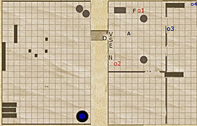 Déplacement de 3 cases pour récupérer son épée puis de 3 autres pour se placer non loin d'Elzear (deux cases a droite et une au dessus)
