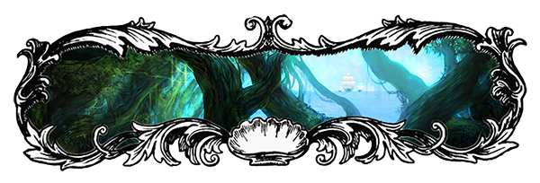 Sous de nombreuses acclamations, timides ou tapageuses, Nërissa descendit de son perchoir avec la même grace que précédemment puis saluât sobrement son expédition et retourna dans sa cabine sans un mot. Ses gardes fermèrent la marche, toujours impassible aux évènements. Les plus observateurs remarquèrent derrière cette modestie que l’honorable paraissait éreintée par son exploit. La huée continua longuement après son départ, l’équipage semblait galvanisé par cet évènement puis l’abrupt commissaire ramena l’ordre de sa lourde voix. Vingt-troisième jour du Crépuscule. (DR1372) Année de la magie sauvage.Milieu de journée. Météo et températures : Nuageux. (5°C) Bande-son de l’auteur Reïlo Blanche Flamme, Gulmar & Mirtzar Boucledacier La journée était pourtant bien entamée mais pourtant le Sceptre resta un long moment dans la pénombre tant la végétation était dense. Malgré cela, la canopée était bien plus ordonnée que la veille, elle formait ici un étonnant dédale similaire à n’importe qu’elle couloir ou allée. On avait peine à croire que cette formation était le fruit d’un phénomène naturel. En fin de matinée, le vaisseau et son équipage passèrent une large arcade de branches et de lianes puis débouchèrent dans une immense baie semblable à un entonnoir végétal. Transportés d’aise, ils bifurquèrent à bâbord, toutes voiles sorties afin de profiter des nouvelles conditions climatiques. La brise se leva dès que le bâtiment quitta l’ombre de l’immense forêt, des reflets turquoise se mirent à tapisser les fonds marins et ils sortirent rapidement du fleuve de Lis pour s’éloigner sur la mer des étoiles déchues.